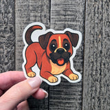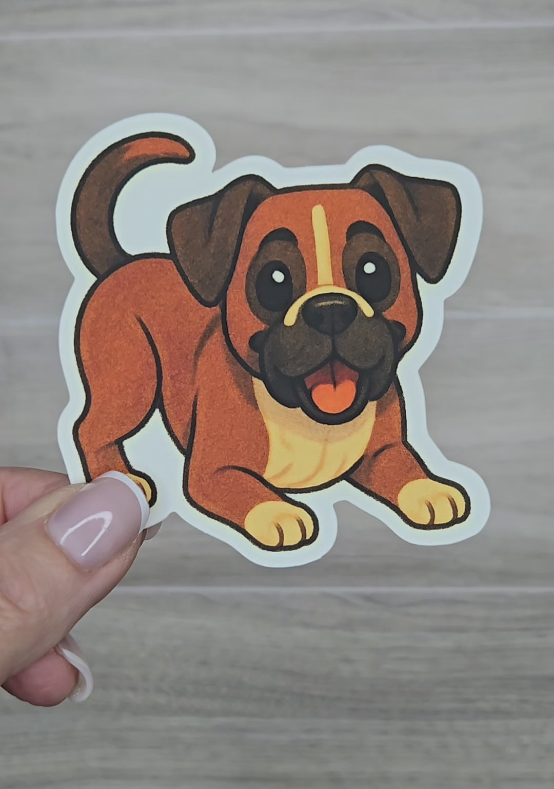 A thoughtful gift for boxer lovers that's sure to bring a smile as bright as this pup's expression. This little boxer is ready to bring some wiggle-butt energy to whatever you stick it on!