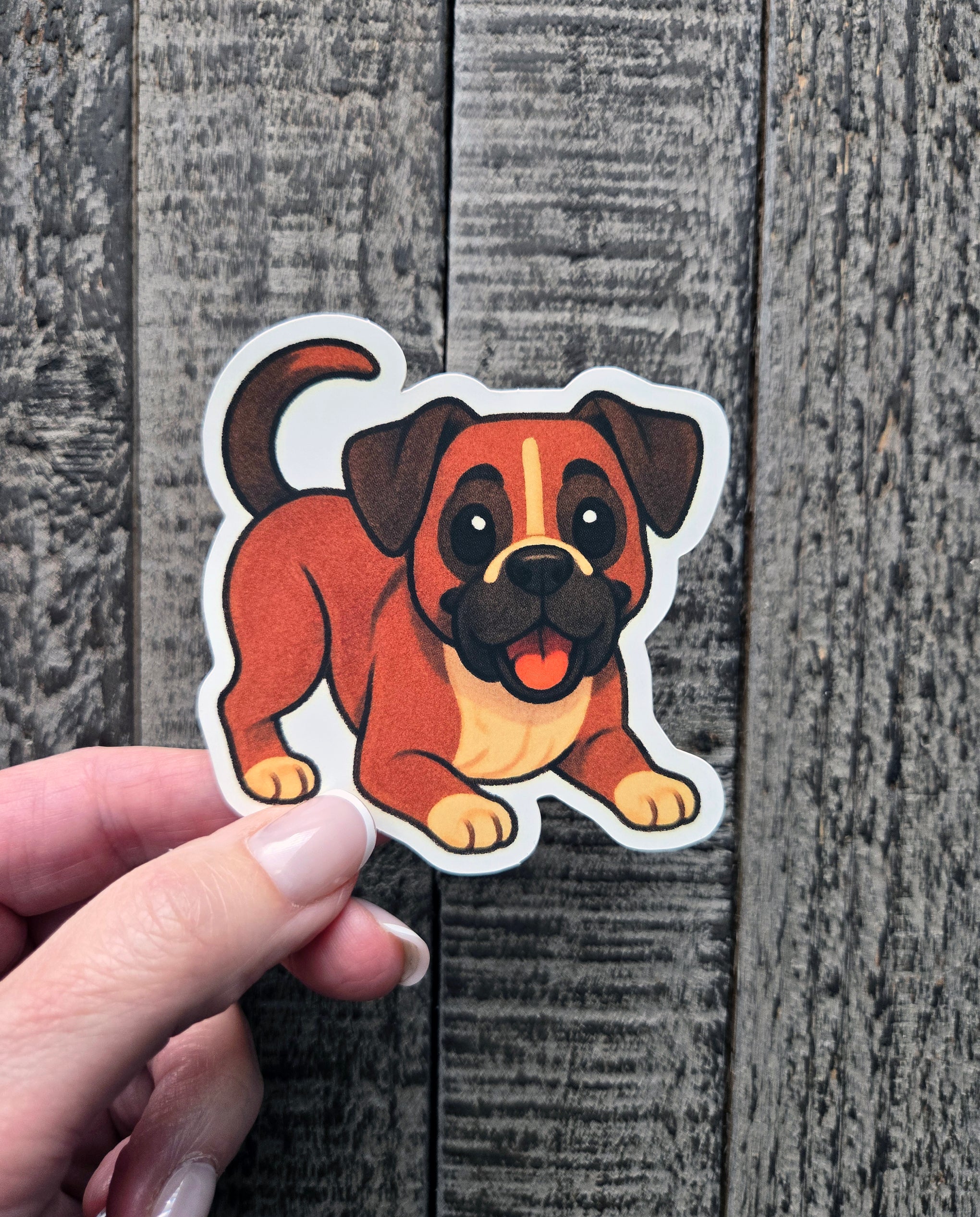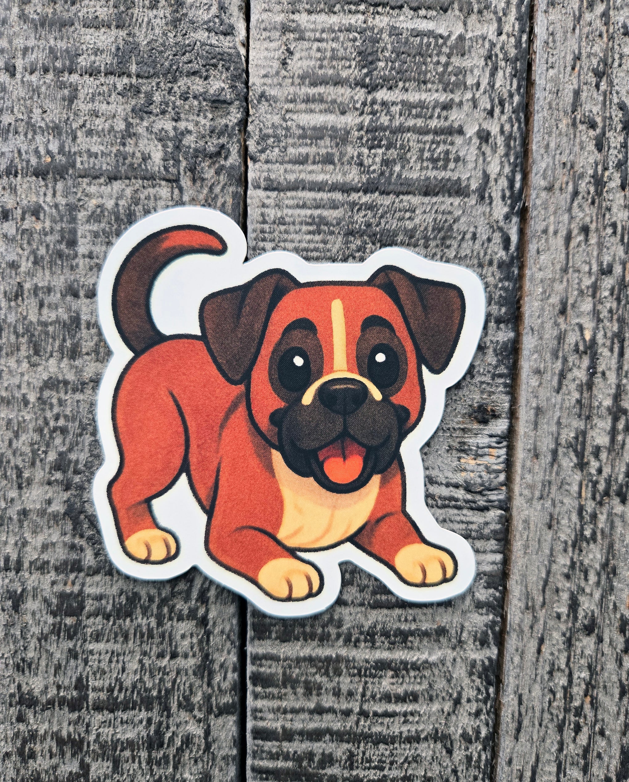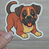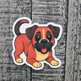 Adorable Boxer Puppy - Brighten your day with this cheerful boxer puppy vinyl sticker! This endearing design features an adorable boxer pup with classic fawn coloring, a distinctive white blaze down the face, and that unmistakable boxer smile. With perky ears, soulful eyes, and an eager expression, this playful pup captures all the charm and enthusiasm that boxer lovers adore.