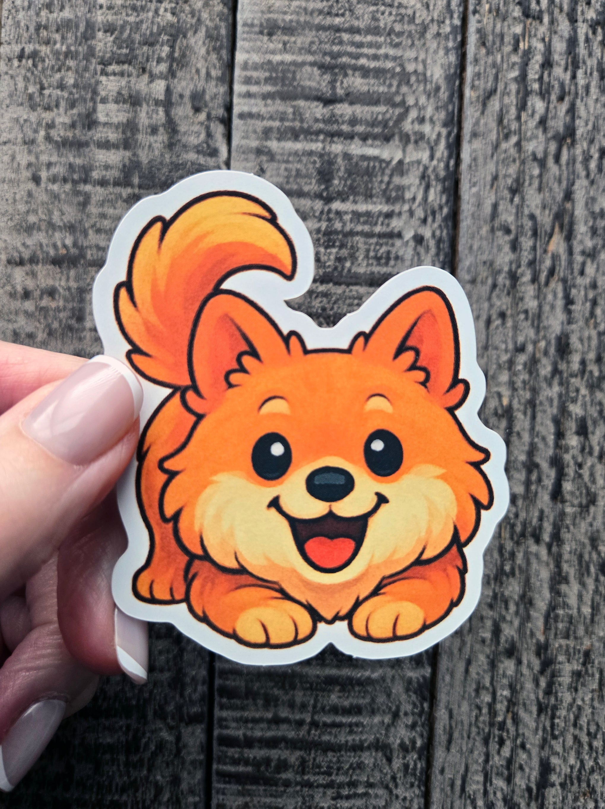 Fluffy Pomeranian Puppy - Bring some pom-pom sunshine or fox-like charm to your day with this irresistibly cute vinyl sticker. This decal captures the spirit of both Pomeranians and Shiba Inus! The vibrant design features an adorably fluffy pup with a gorgeous orange-gold coat, bright expressive eyes, and that signature alert expression that makes these breeds so beloved. With perky ears, bushy tail, and a delightful smile, this cheerful companion perfectly captures the spirited personality that both Shiba and Pom lovers adore!