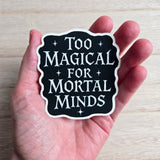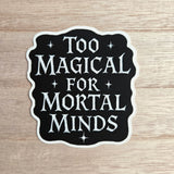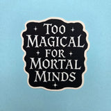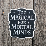 Embrace your mystical side with this enchanting fantasy sticker that speaks to every magical soul! "Too Magical For Mortal Minds" perfectly captures that feeling when your otherworldly energy is just too powerful for the ordinary world to understand.
