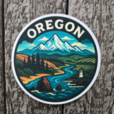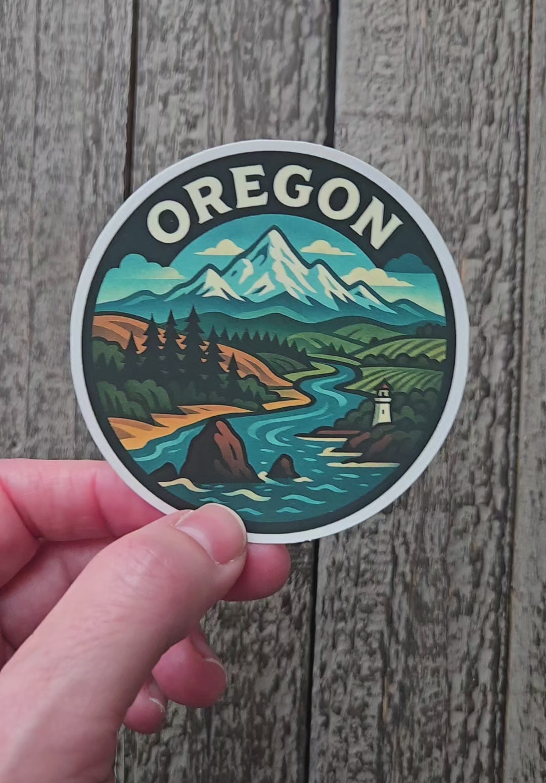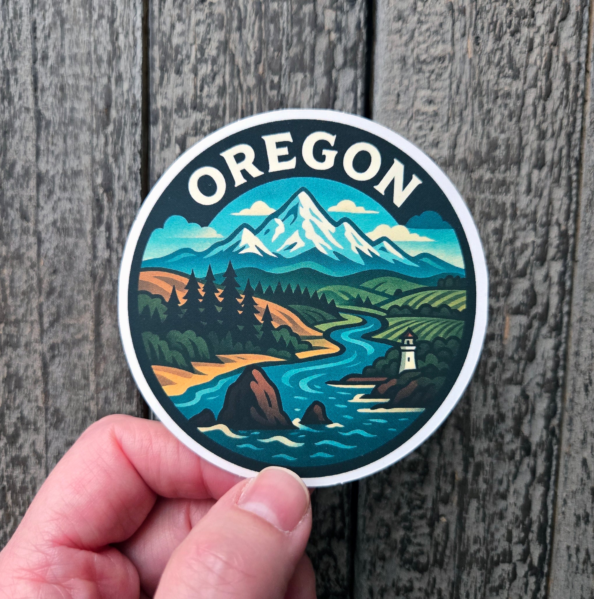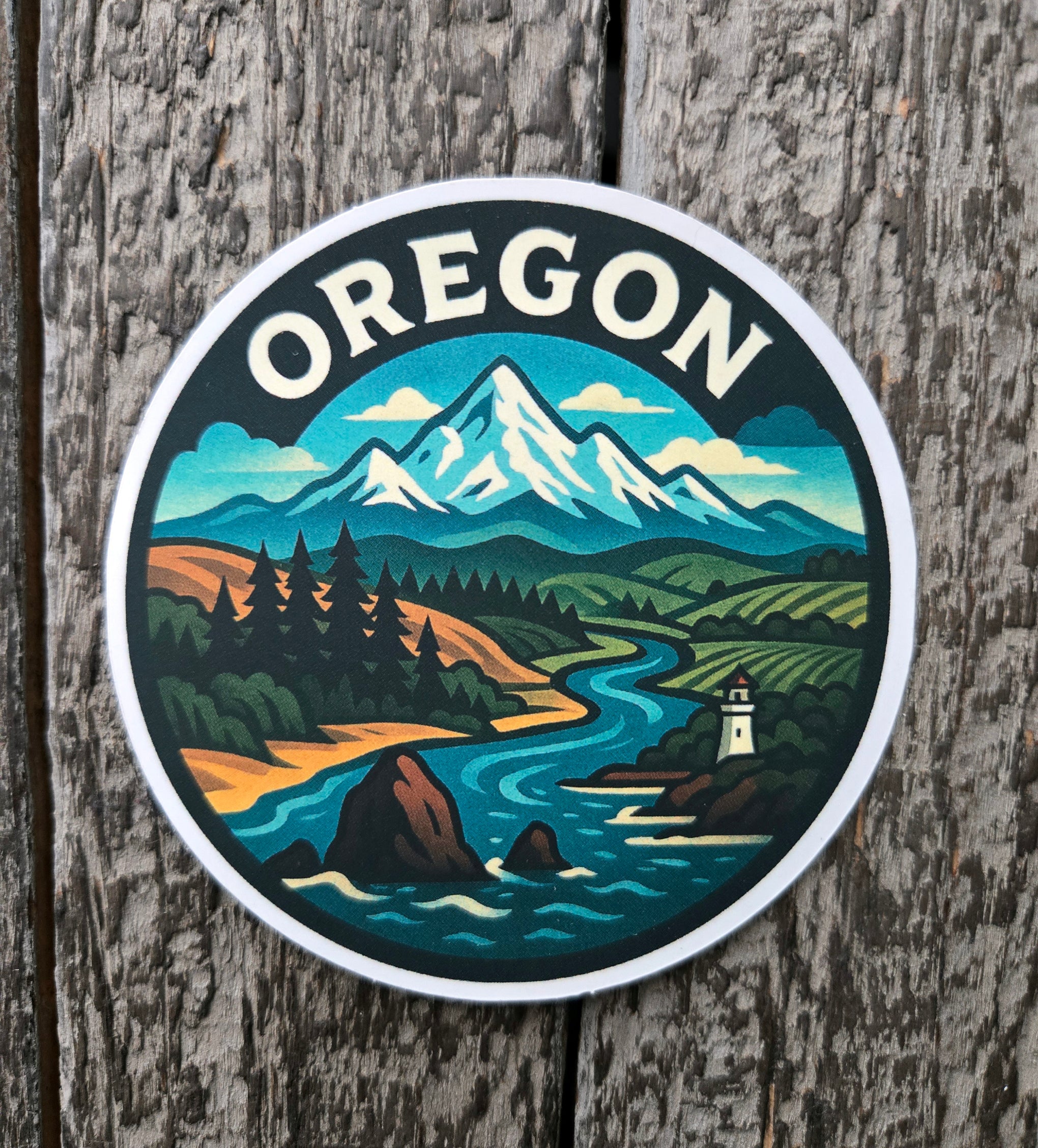 This design captures Oregon's diverse landscapes in rich, earthy tones with beautiful detail. Whether you're a local Oregonian, visited the state, or simply love Pacific Northwest vibes, this sticker is a perfect way to show your appreciation for Oregon's natural wonders.