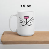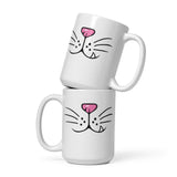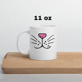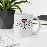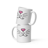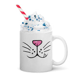Cat Face Ceramic Mug – Transform into a cat with every sip! This adorable novelty mug features a cute cat face design with whiskers, pink nose, and a cheeky smile. When you drink from this mug, you become the cat!