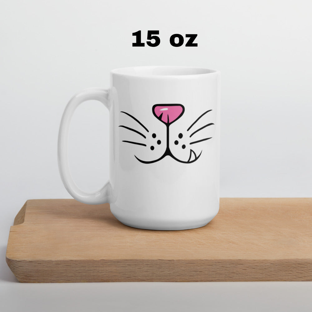 The design wraps beautifully on both sides, creating the perfect cat face illusion that's guaranteed to make everyone smile at breakfast or during virtual meetings.